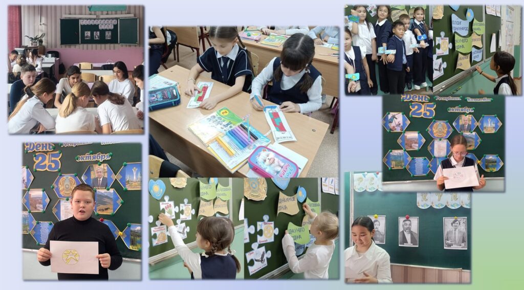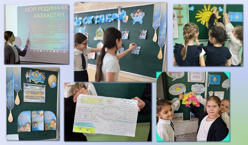 Сегодня в нашей школе прошли классные часы под названием «Республикам – мақтанышым!», посвящённые Дню Республики Казахстан — одному из самых значимых праздников нашей страны. Во время классных часов ребята говорили о важности независимости, о символах государства, о пути развития Казахстана и роли каждого гражданина в будущем Родины. Особое внимание уделялось воспитанию чувства гордости за Родину, уважения к её истории и традициям. Такие мероприятия помогают детям осознать, что любовь к Родине начинается с малого — с добрых дел, уважения к людям и стремления к знаниям.